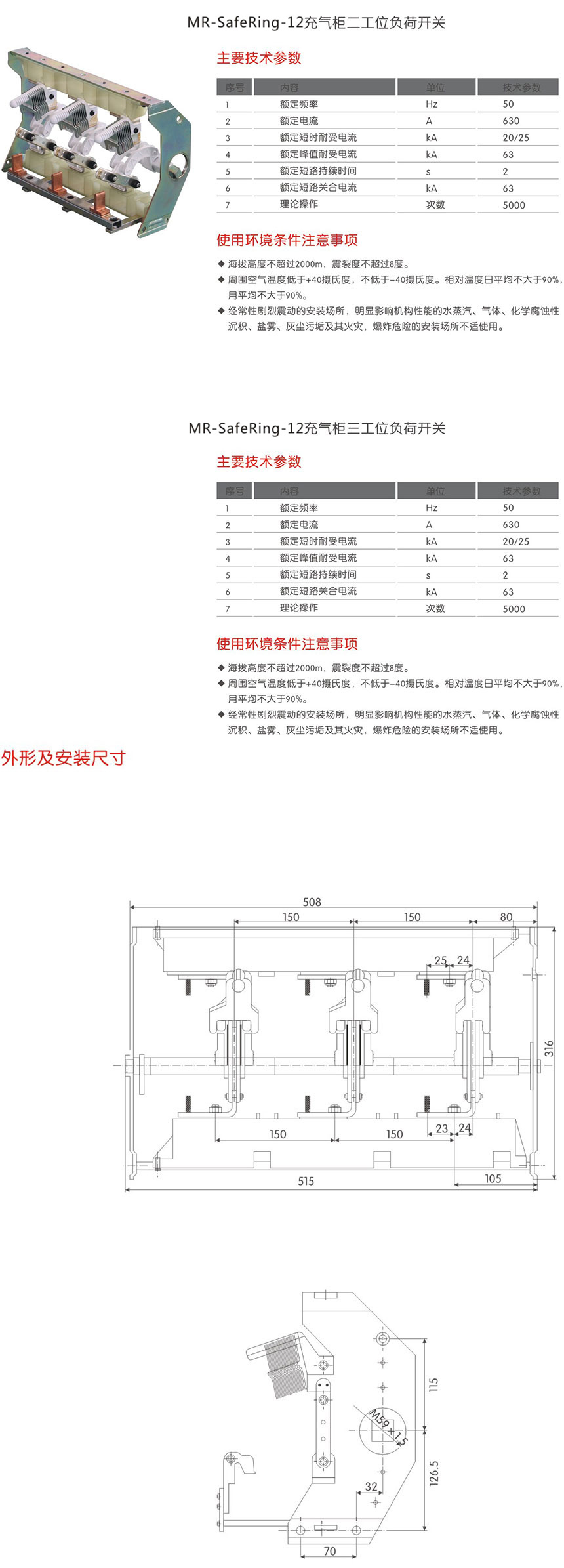 MR-SafeRing-12充氣櫃二-三工位負荷(hé)開(kāi)關